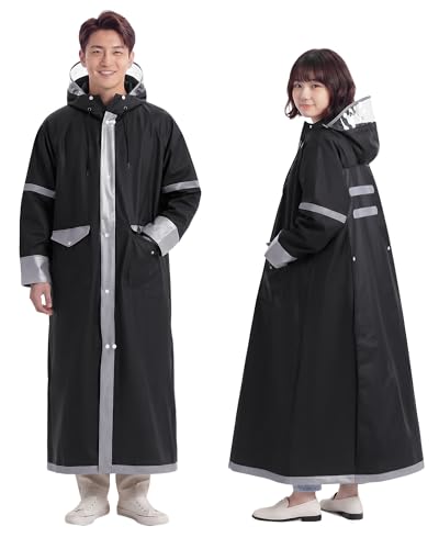 [Kimwood] 【レッドドット受賞 JIS 級防水&シームレス】レインコート 自転車 5級撥水【激雨対応!強力防水構造】レインコート レディース メンズ リュック対応 超軽量 カッパ ポンチョ ポケット付き ロング丈 通勤通学 防災 アウトドア フェス (ブラック, L)