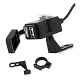 Fkstyle【防水・2ポート】バイク用 USB電源 USB充電器 最大2.1A 急速充電 12V-24V対応 ON/OFFスイッチ付き ハンドル/ミラー取り付け スマホ ナビ (ブラック) [並行輸入品]