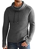 JINIDU メンズ フード付き タートルネック ファッション サーマル カウルネック リブ編み セーター クリスマス, グレー, Large