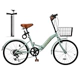 Mixiu 折りたたみ自転車 20インチ 軽量 素早く折畳可能 P-O8 シマノ6段変速 高炭素鋼フレーム ハンドル・サドル高さ調整可能 折り畳み自転車 通勤 通学 折畳み自転車 前後泥除け装備 ワイヤーロック、ライト、カゴ、空気入れ付き 男女兼用 (ライトグリーン)