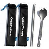 COOK'N'ESCAPE チタン カトラリー 2点セット【 先割れスプーン+箸 】純チタン製 軽量 約50g 無塗装 金属アレルギー対応 収納袋付 アウトドア キャンプ 登山 ソロキャンプ ツーリング 防災 3in1 ナイフ フォーク セット 食器